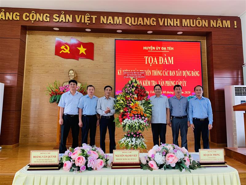 Lãnh đạo Huyện ủy Đạ Tẻh tặng hoa chúc mừng tại lễ kỷ niệm Ngày truyền thống các Ban xây dựng Đảng, Ủy ban Kiểm tra và Văn phòng cấp ủy tại Đạ Tẻh
